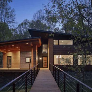Nestled in the woods of Butler County, the Gaskill residence modern, sustainable home fits seamlessly into its natural surroundings.