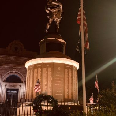 The once vandalized Doughboy statue in the heart of Lawrenceville, has been restored to its former glory. The statue is beautifully illuminated using BK Lighting products (donated by Repco II).