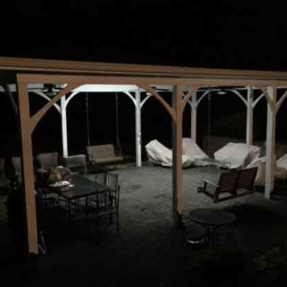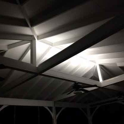 The owners of this pavilion wanted a way to light the pavilion without hot spots or glaring fixtures in the picturesque setting of an open field. The Orion Lasso mounted easily to the top of the center joist hiding the fixture while providing soft indirect light that doesn’t affect the surrounding environment.